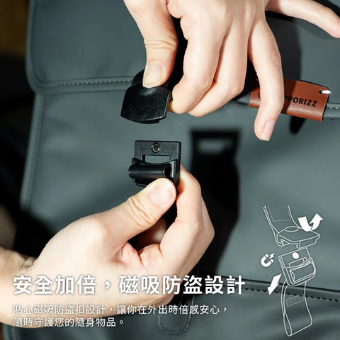 貼心磁吸防盜扣設計,讓你在外出時倍感安心,隨時守護您的隨身物品。