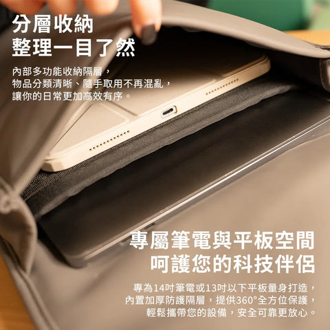 專為14吋筆電或13吋以下平板量身打造,內置加厚防護隔層,提供360°全方位保護,輕鬆攜帶您的設備,安全可靠更放心。