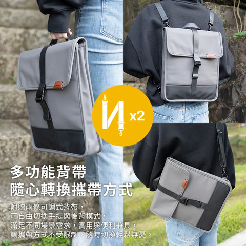 附贈兩條可調式背帶,可自由切換手提與後背模式,滿足不同場景需求,實用與便利兼具,讓攜帶方式不受限制,隨時切換輕鬆無憂。