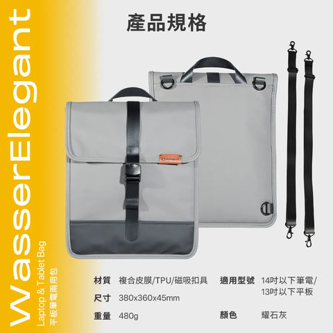 WasserElegant 高質感PU皮革 14吋 平板筆電兩用包-曜石灰 (三種揹法)