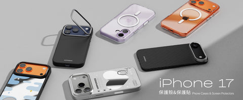 透明款、鏡面支架、凱芙拉輕薄設計超透明抗黃殼、杜邦Kevlar極輕薄防刮手機殼、鏡面支架殼、MagSafe磁吸殼與滿版鋼化玻璃貼。提供抗黃透明背板、輕薄如裸機手感、強化防摔邊框、吸震、防指紋、防刮耐磨與磁吸穩定度等完整防護,所有款式皆精準貼合iPhone 17全系列機身。