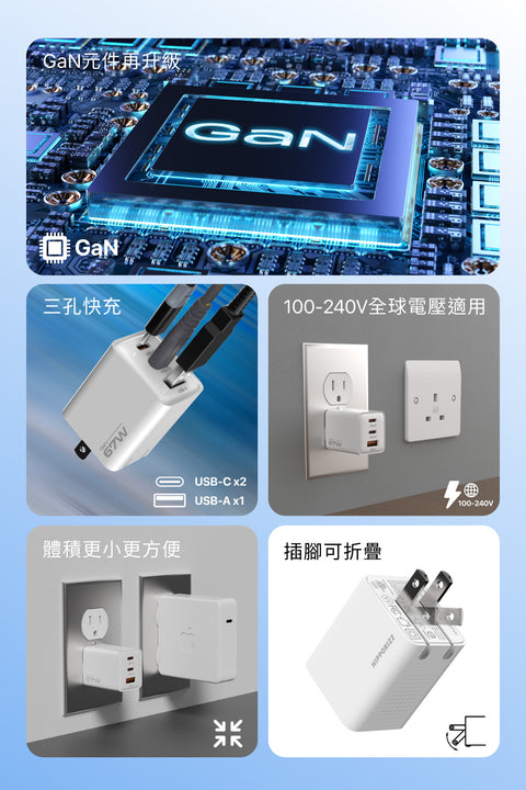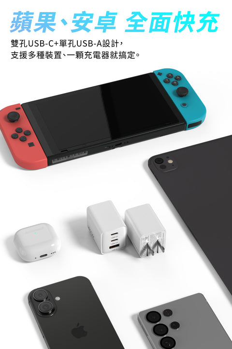 ● 三孔快充設計,體積最迷你攜帶方便 。