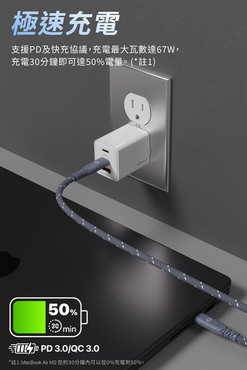 Chargo 67W 氮化鎵快速充電器 (全球電壓適用)