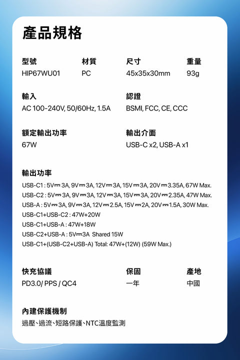 ● 內建短路、過熱、過壓等多重保護,一年保固。