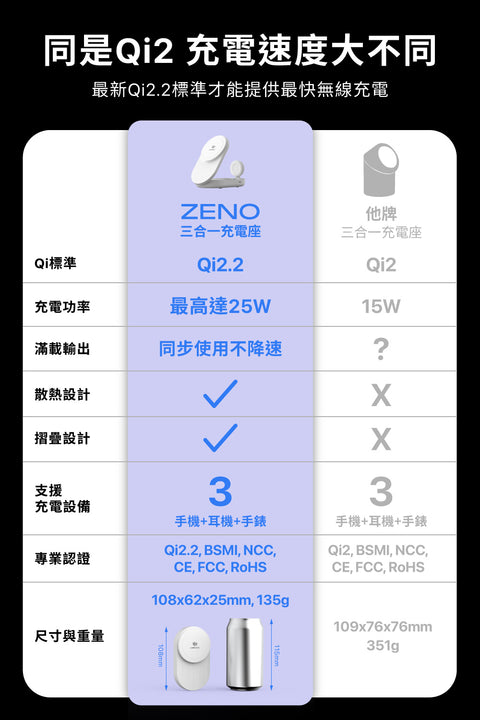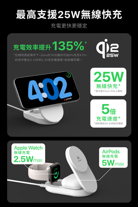Zeno Qi2.2-25W 三合一折疊無線充電座