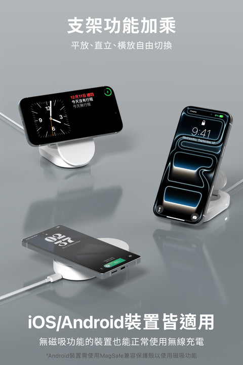 磁吸對位充電,無磁吸機型也能平放使用